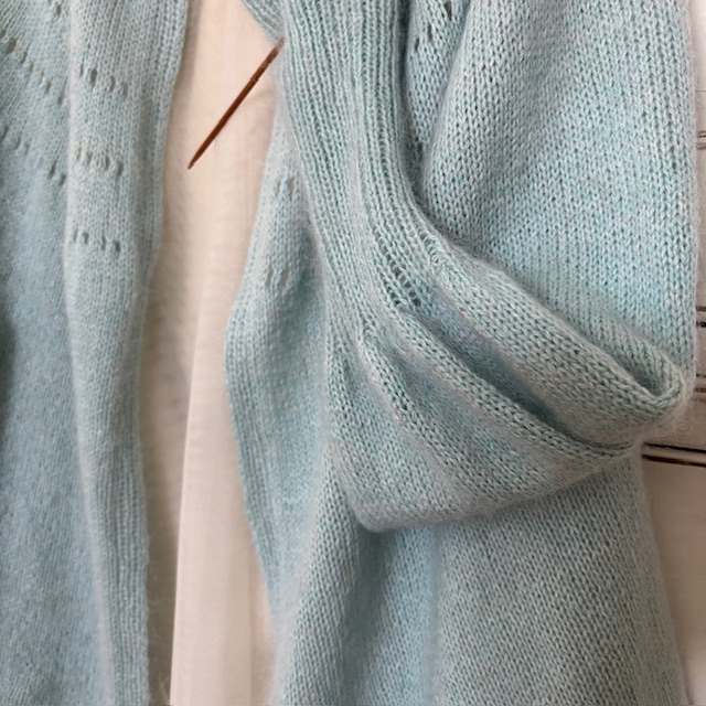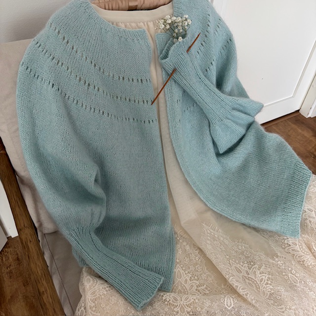 Pakko myöntää, että joskus neuloin tätä vähän silloinkin kun se ei maistunut – alunperin kun tästä piti tulla lämmikettä kesäksi ja into ehti etenemisen viipyillessä välillä vähän kadotakin. Turkoosi on kuitenkin yksi pysyvistä lempiväreistäni (muuten lempivärivalikoima on hyvinkin vaihteleva :D) ja siitä ilosta takki loppujen lopuksi valmistui. Ja kyllä kannatti!