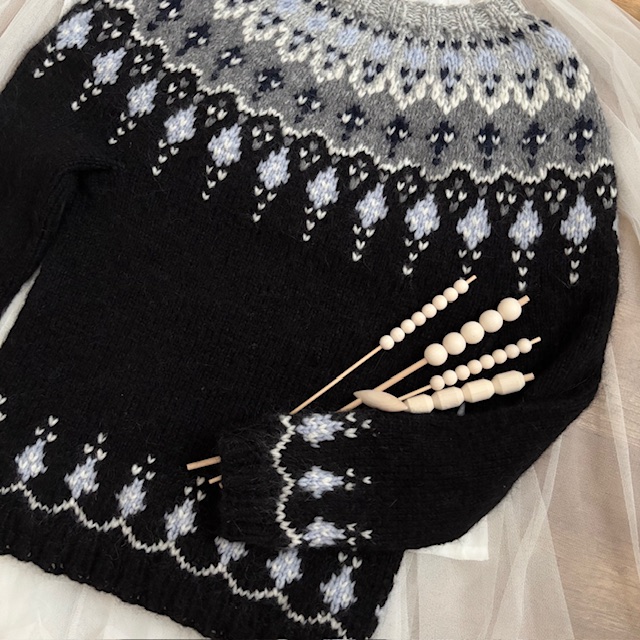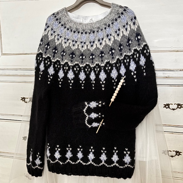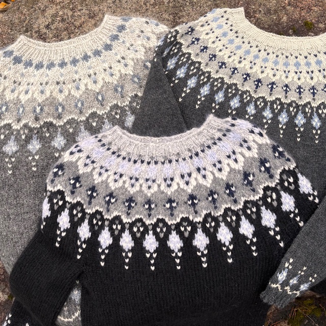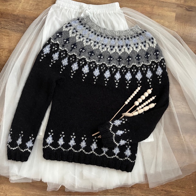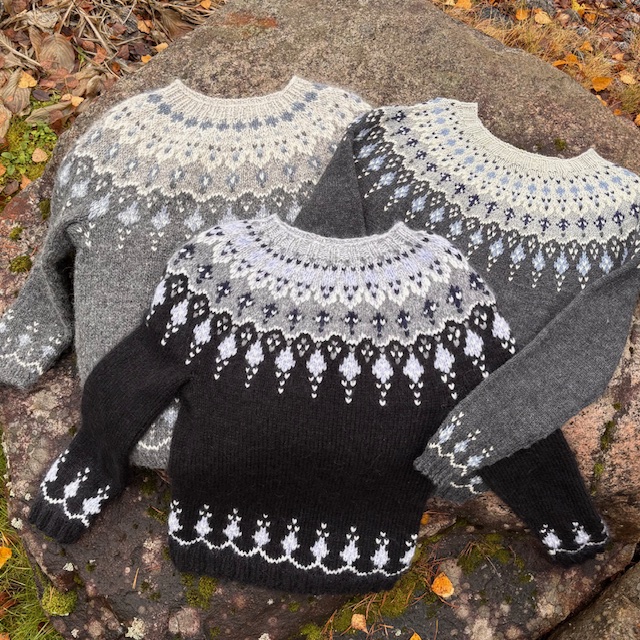 Alunperin suunnittelin kuvion Alafosslopille ja mallin piti jäädä vain itselleni, mutta neulemallihaun yhteydessä muunsin sen 7 veljestä -langalle sopivaksi.