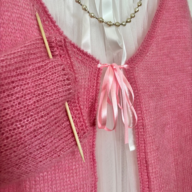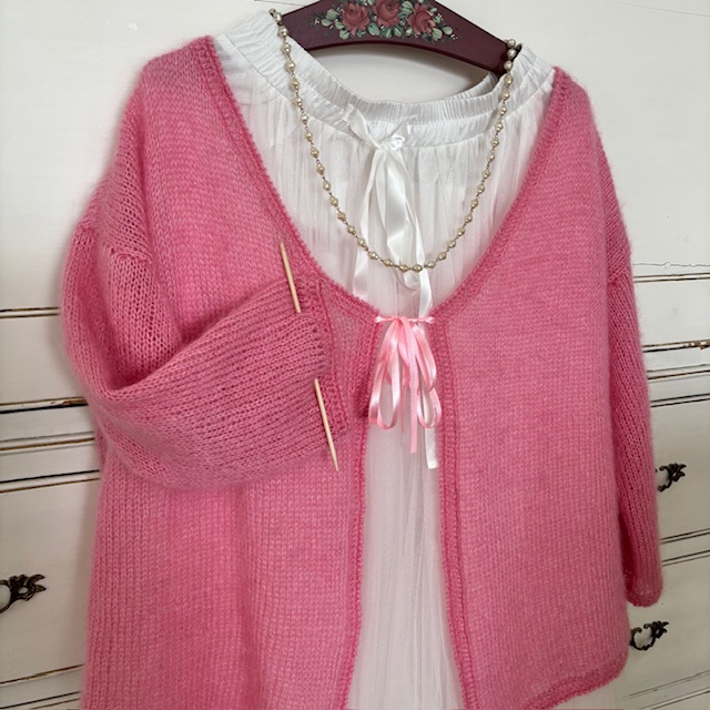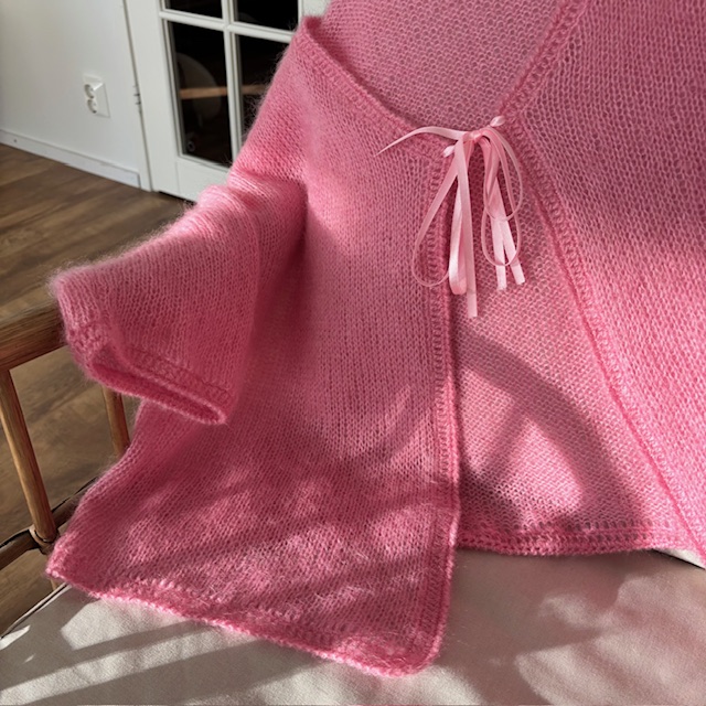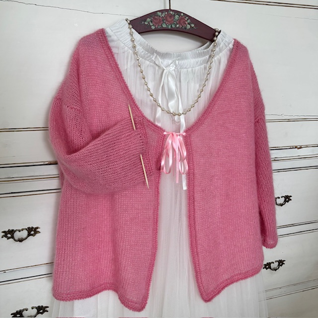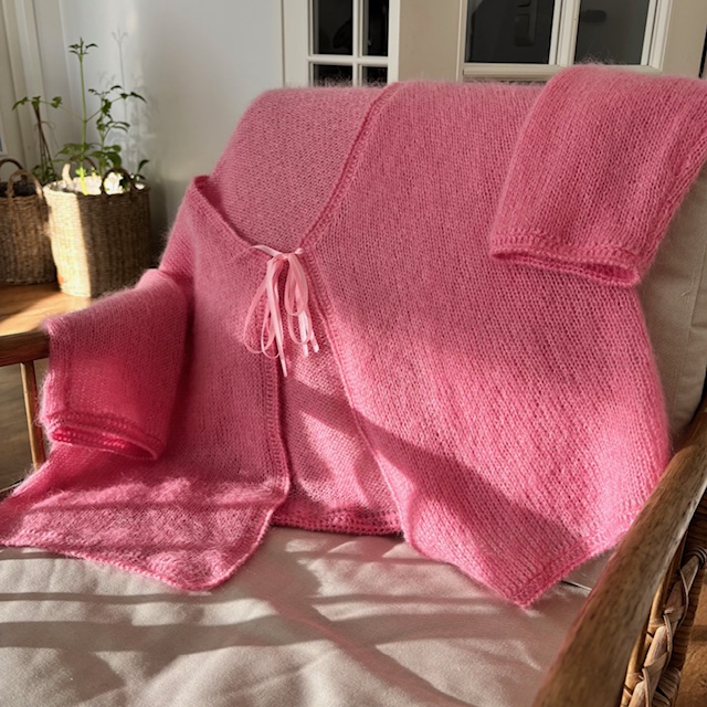 Viime viikkojen vapaapäivinä olen neulonut mansikkajäätelön värisestä Dropsin Kid-Silkistä kepeää ja kesään sopivaa neuletakkia. Itselleni ihan poikkeuksellisesti päätin kutoa takin eri kappaleista, koska tavallisesti välttelen innokkaasti ompelemista ja päättelyä! Kappaleiden yhdistäminen ei ollutkaan ihan kamalaa, ja virkkaamalla somistetut reunat antavat neuletakille nätisti viimeistellyn ilmeen.