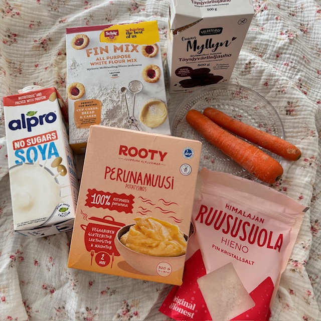 Kirjoitinpa muistiin myös porkkana-perunarieskojen ohjeen. Ohjeella saa todella pehmeitä leipäsiä myös heille, joiden erityisruokavalio edellyttää luontaisesti gluteenitonta, maidotonta ja munatonta syötävää. <3 Nämä rieskat ovat tulleet meidän kotikeittiöön jäädäkseen, ja säätämisten jälkeen resepti alkoi olla niin käypänen että päätin kirjoittaa sen ylös muidenkin iloksi.