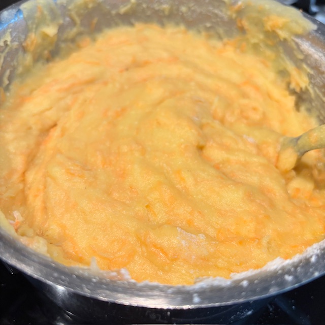 - Lisää vähitellen mukaan jauhot välillä sekoittaen.