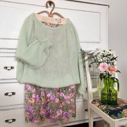 Oijoi, miten kaunis sävy onkaan Drops Designin Kid Silk -langan ‘pistaasijäätelö’! <3 Aina kevään tuleen värit alkaa löytää eri tavalla omaan pukeutumiseenkin ja vaatteet saa hehkua enemmän valoa. Kun mietiskelin mitä neuloisin (koska kuka voisi olla kutomaattakaan?), sain ajatuksen tehdä raikkaan värinen ja pehmeä paita niihin kevään päiviin, kun päällystakin …