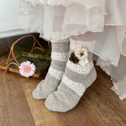 Välillä isompien neuleiden välissä on mukavaa tehdä jotain nopeammin valmistuvaa! Siispä laitoin “välipalasukat” puikoille omasta jemmasta löytyneistä Novitan Nalle-langoista. Olisinko tarvinnut uudet villasukat? En. Halusinko silti kutoa sellaiset? Kyllä! Suunnitelmana oli tehdä lempeänväriset sukkaset, joissa olisi jotain vähän kesäistä ja koristeellista. Kirjoneulesukkiin ei nyt ollut inspiraatiota, joten päätin leikitellä simppelin …